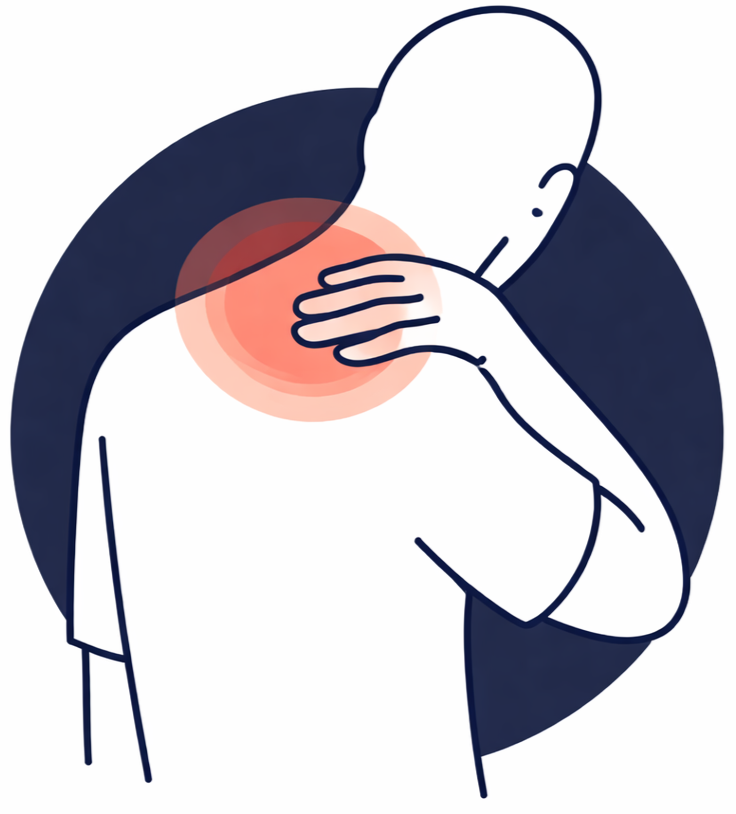 Over time, your neck muscles stay slightly contracted all day — especially at the base of your skull and across your upper traps.
