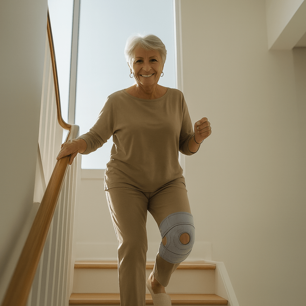 "After my accident, I used to dread going upstairs, always holding on to the railing because I thought my knee would give out. With this brace, I feel steady and supported. It’s the first time in years I’ve walked up without fear."